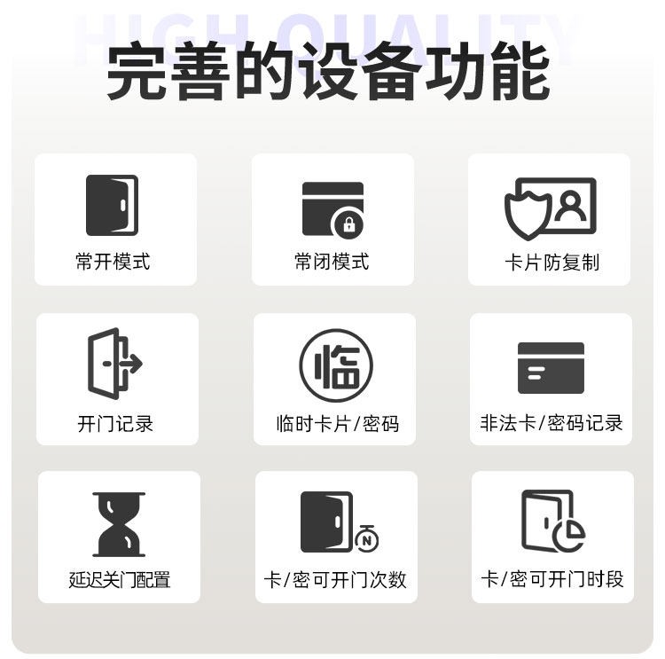 广西这款智能门锁提供室内门锁和防盗门锁两种选择,其中室内门锁尺寸为 2806521mm,适配 5050 锁体;防盗门锁尺寸为 3657021mm,适配 6068 锁体,可满足不同场景的安装需求。它采用铝合金一体成型搭配钢化玻璃面板打造,兼具坚固耐用的品质与简洁美观的视觉效果。门锁支持蓝牙无线通讯,解锁方式丰富多样,密码、卡片、蓝牙、钥匙四种方式随心选择,满足不同使用习惯与应急需求。其工作温度范围为 - 20~70℃,能适应多数地区的气候条件,采用碱性电池供电,安装更换便捷,是兼具安全性与实用性的门锁选择。